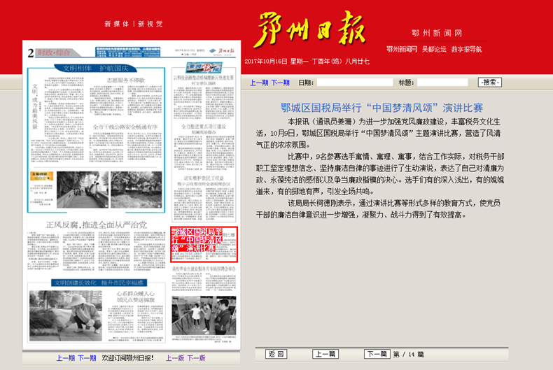 【鄂州日报】鄂城区国税局举行“中国梦清风颂”演讲比赛
