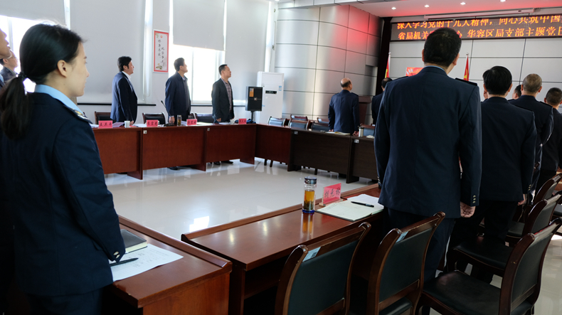 “我志愿加入中国共产党,拥护党的纲领,遵守党的章程……”全体党员再一次重温入党誓词,沐浴信仰的光芒,不忘初心,继续前进。