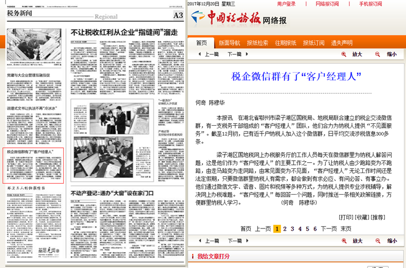 【中国税务报】梁子湖区局:税企微信群有了“客户经理人”
