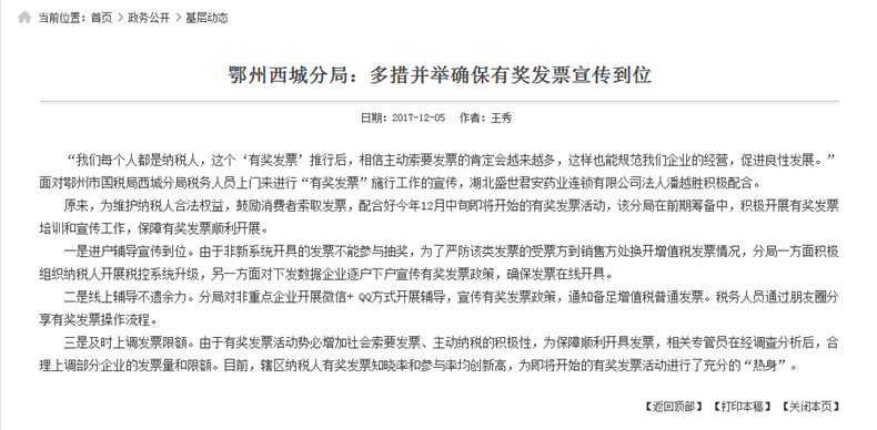 【省局基层动态】鄂州西城分局:多措并举确保有奖发票宣传到位