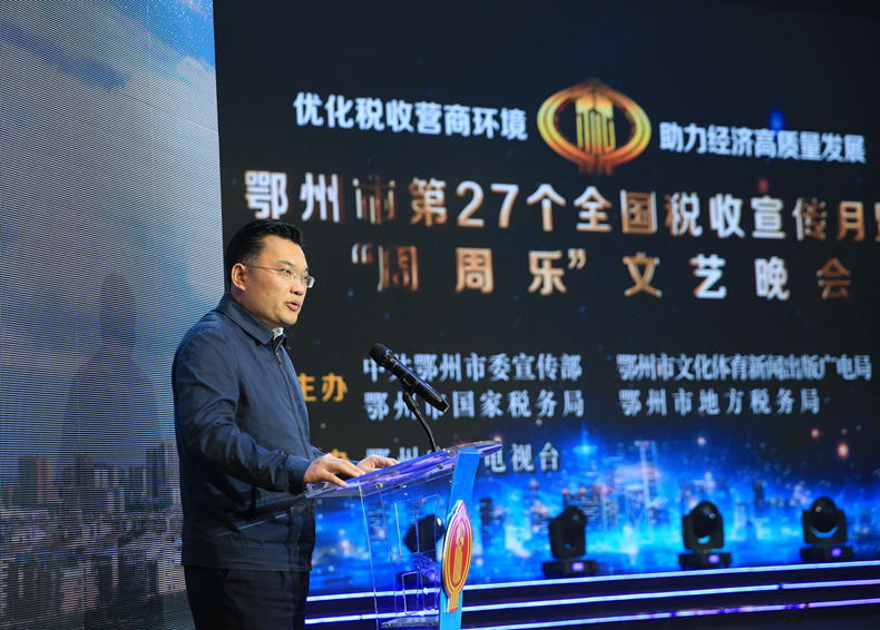 4月27日晚,我局与市地税局联合举办第27个全国税收宣传月暨“周周乐”文艺晚会。晚会在市广播电视中心一号演播厅隆重举行,来自十家企业的职工代表以及国税、地税干部代表共300余人参加了此次活动。市委常委、常务副市长李军杰,市政府副秘书长刘军等领导出席了活动。 李军杰在晚会上作了重要讲话,他指出,当前,百万鄂州人民正在为建设国际航空大都市的宏伟目标而不懈努力。希望全市各级税务机关能够继续坚持以优化税收环境、维护税收秩序、发挥税收职能为己任,促进各项税收改革落实,帮助企业减负降税。同时,也希望广大纳税人和社会公众从我做起,从现在做起,争做依法诚信纳税的时代楷模,共同为推动鄂州国际航空大都市建设做出更大贡献。 文艺晚会在《盛世欢歌》的舞蹈中拉开帷幕。整场晚会紧扣“优化税收营商环境,助力经济高质量发展”主题,乐舞交融,气氛热烈。气势恢宏的大合唱《中国税务之歌》和声情并茂的国学经典诵读等节目生动地向群众展现了税务人的风采,传播了正能量。晚会中,主持人详细介绍了国务院关于深化增值税改革的相关政策,并在现场发起了有奖问答,纳税人代表们对此反响热烈,积极踊跃地参与了抢答。此次晚会还首次开通了网络直播平台,共有1.4万余人同步收看了现场直播,取得了良好的税收宣传效果。